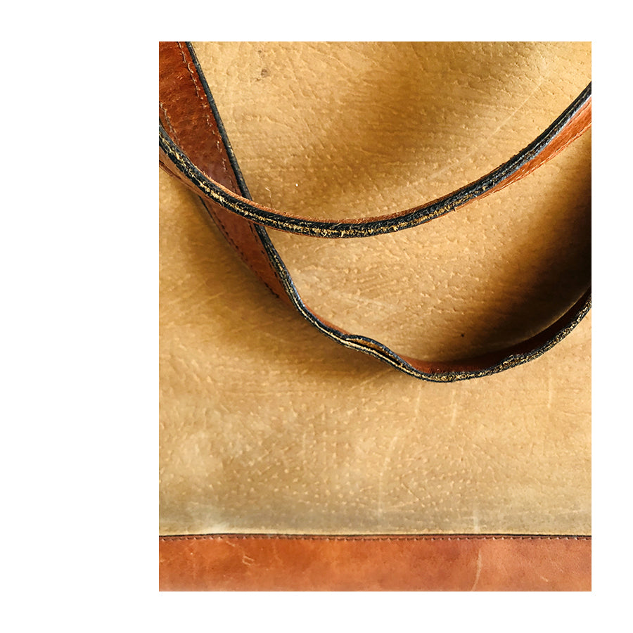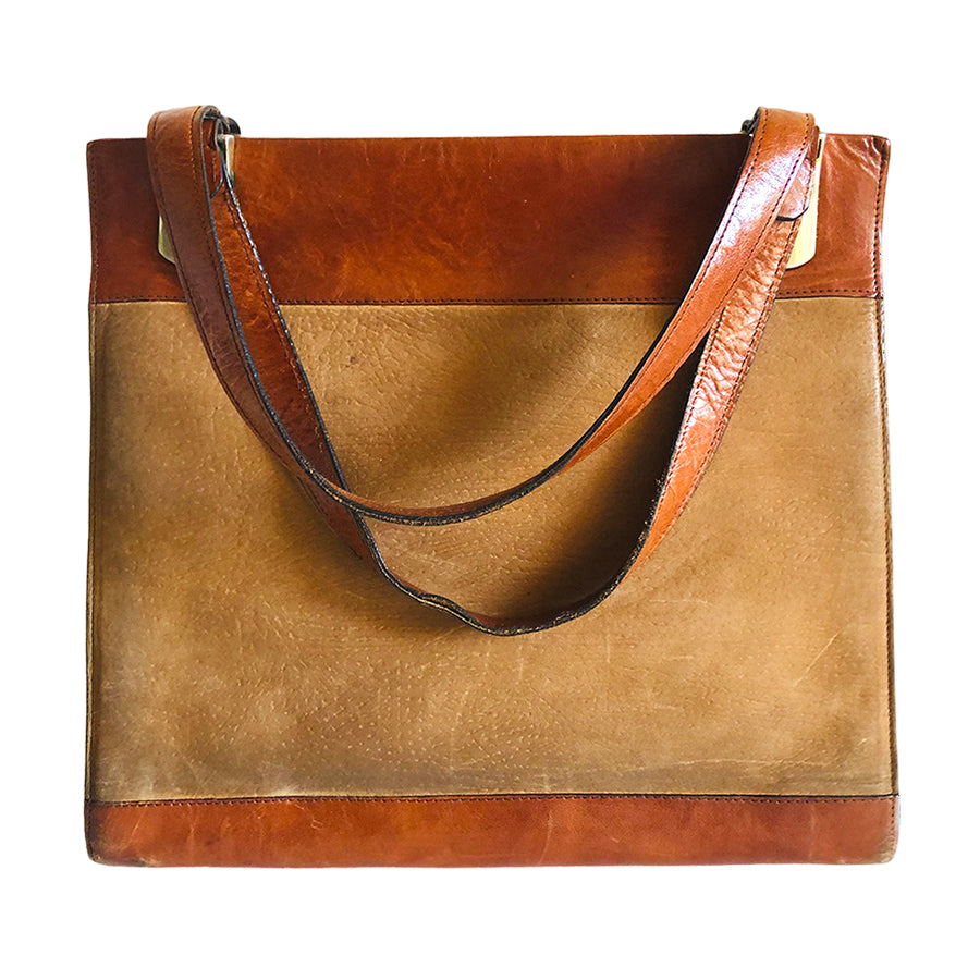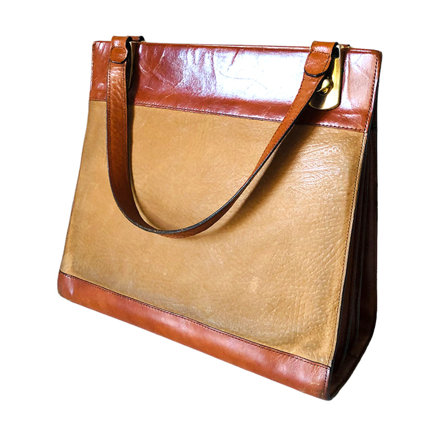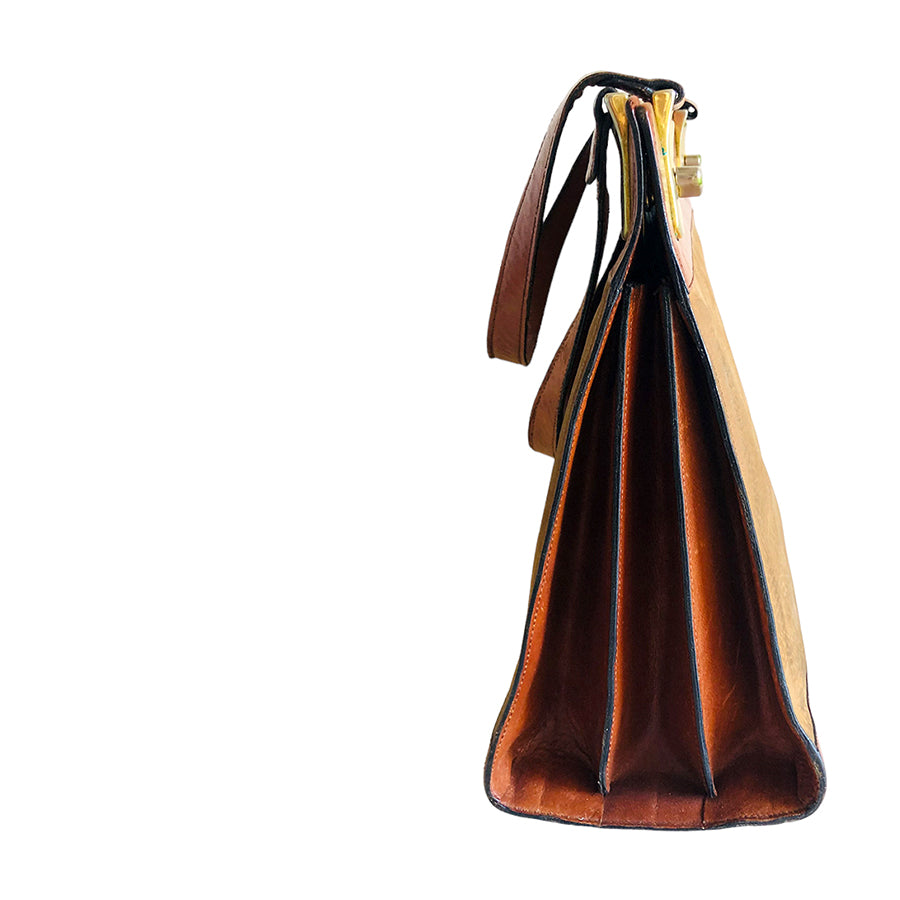 Borsa in pelle e cuoio con interno a soffietto e metalleria dorata