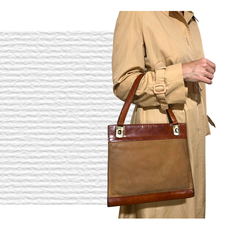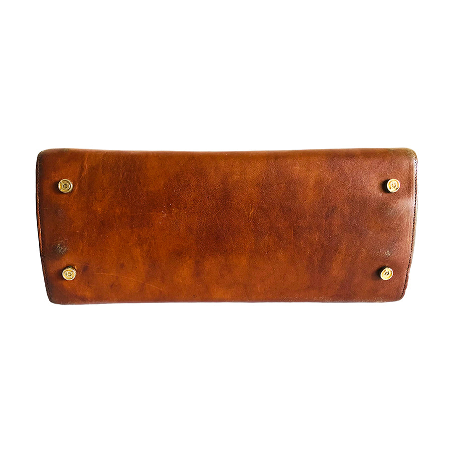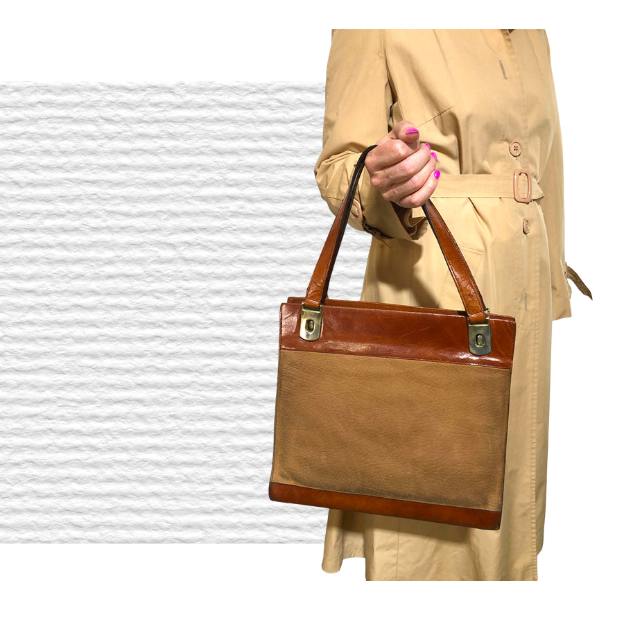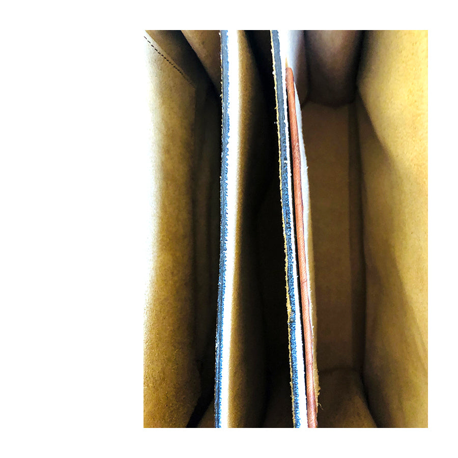 Borsa in pelle e cuoio con interno a soffietto e metalleria dorata