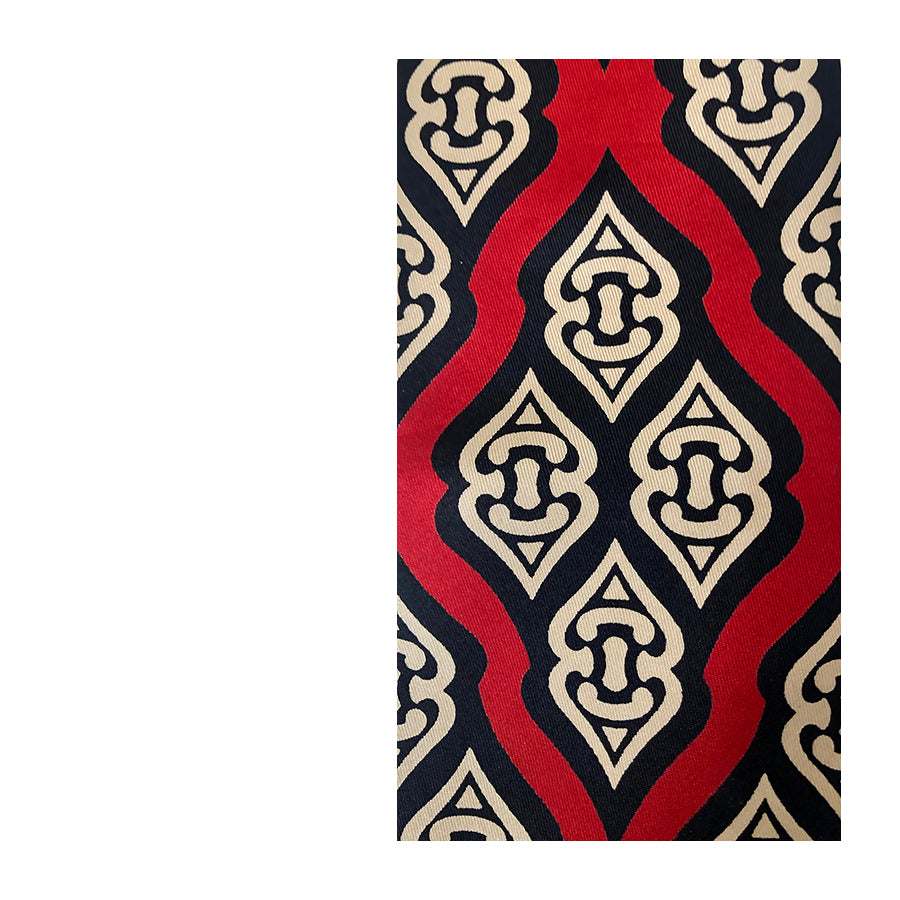 Colore: rombi intrecciati in tonalità di rosso acceso, nero e avorio
