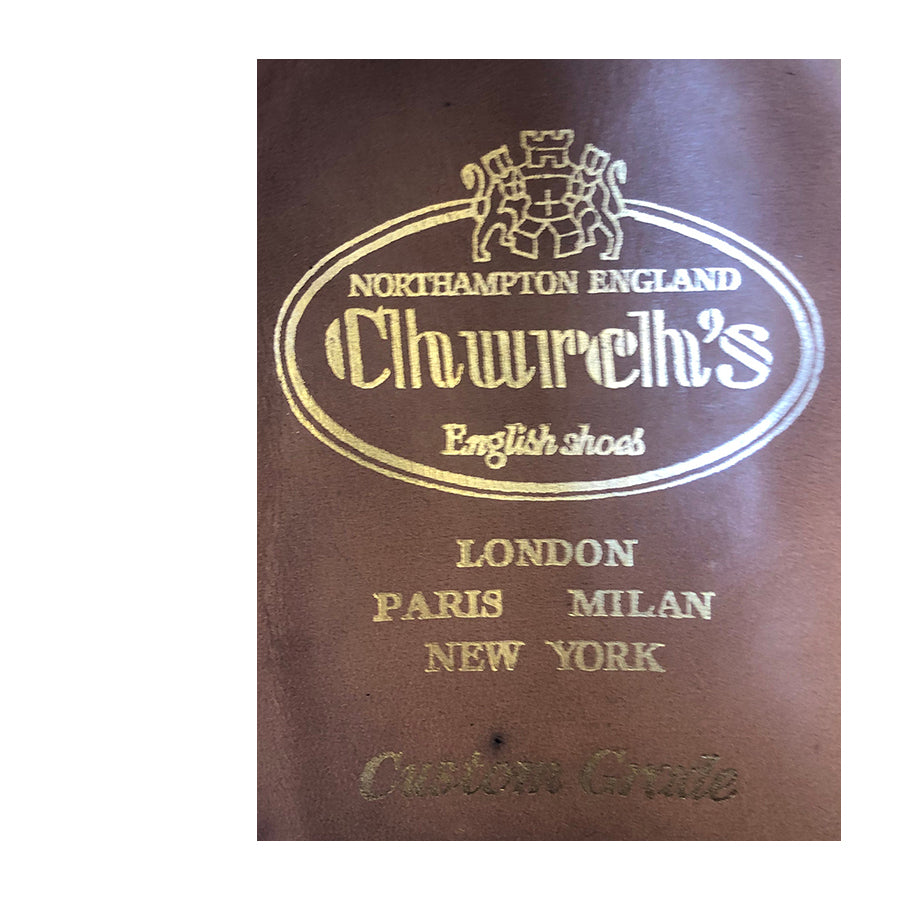 Oxford cap toe Church’s in pelle di vitello marrone scuro, con finitura lucida e cuciture a vista. Vintage’80–’90 e appartenenti alla linea Custom Grade, rappresentano la fascia più alta della produzione Church’s: lavorazione Goodyear Welted per una durata eccezionale, interni in morbida pelle e la suola robusta. Un capolavoro di artigianato britannico che unisce eleganza, qualità e tradizione.