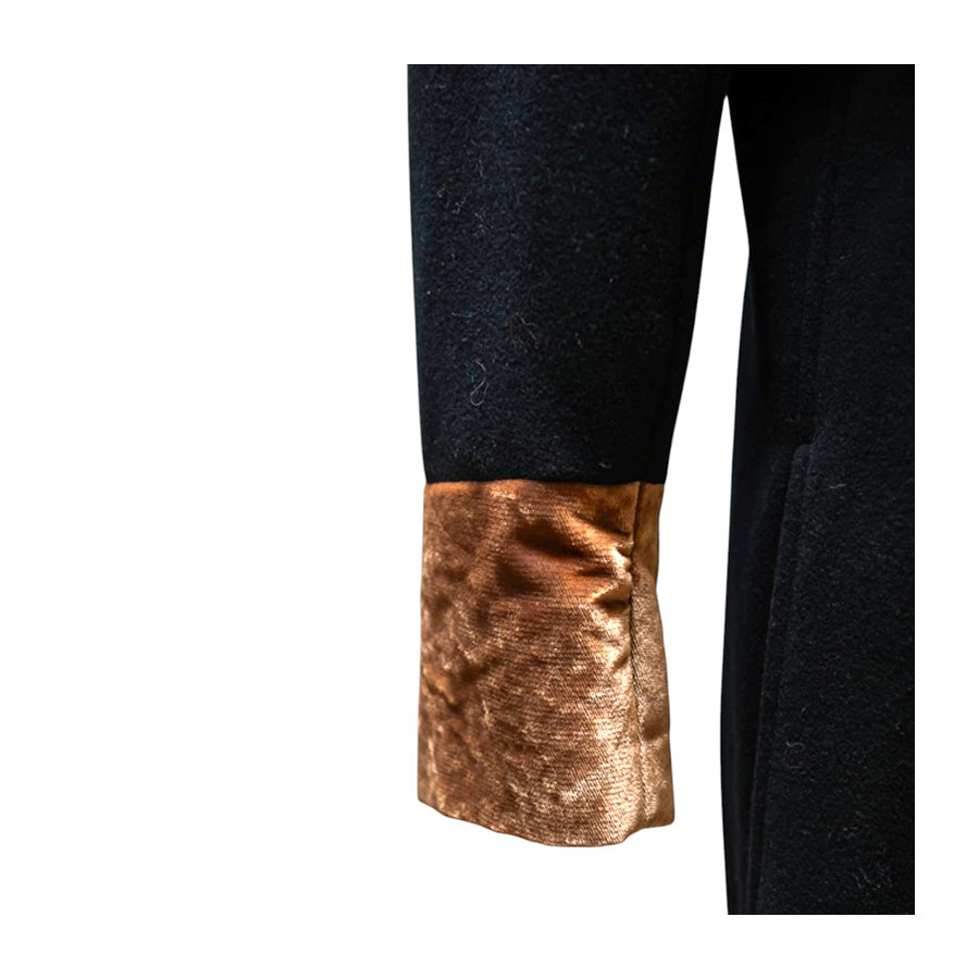 Colore: Nero con dettagli in velluto color bronzo su colletto e polsini