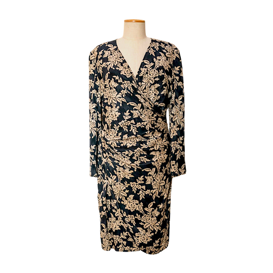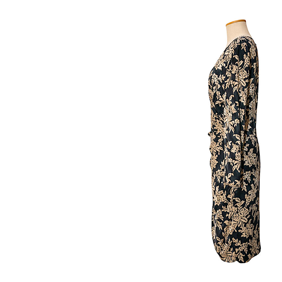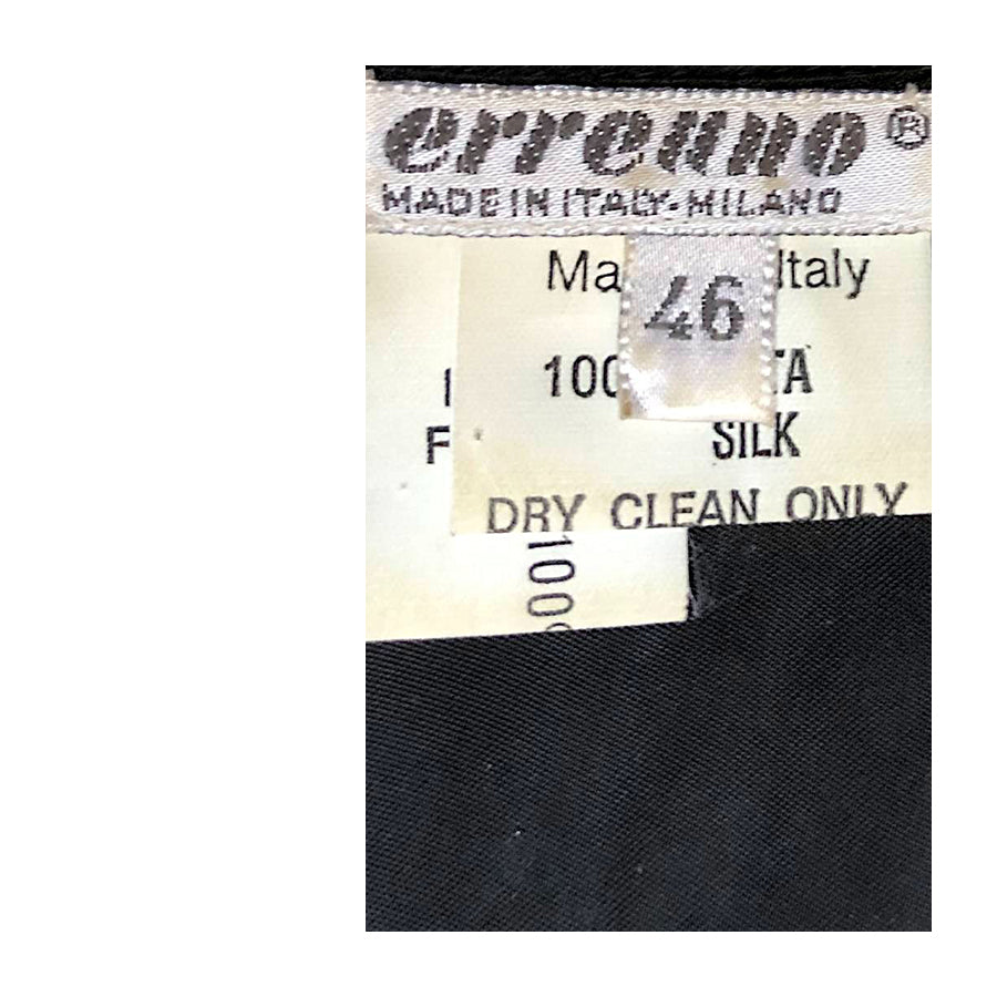 Abito vintage in pura seta Erreuno. La linea è morbida e scivolata, con una vestibilità che segue delicatamente le forme grazie alla naturale leggerezza del tessuto. L’aggrappatura laterale, con drappeggio asimmetrico valorizza la silhouette. Un vero pezzo d’autore dal fascino vintage.