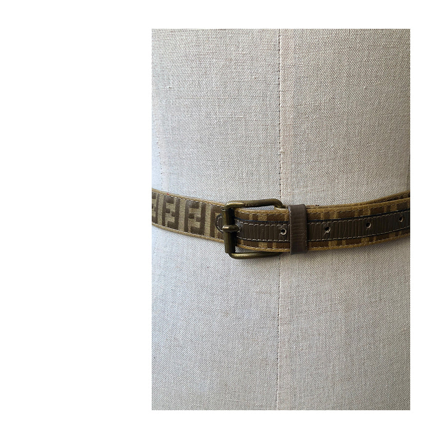 Iconica cintura vintage ‘90 Fendi in tessuto color oro con l’intramontabile monogramma FF all-over. fibbia in metallo dorato anticato e dettagli in pelle. Un autentico pezzo da collezione vintage Fendi, ideale per chi ama lo stile retrò e i grandi classici del lusso.