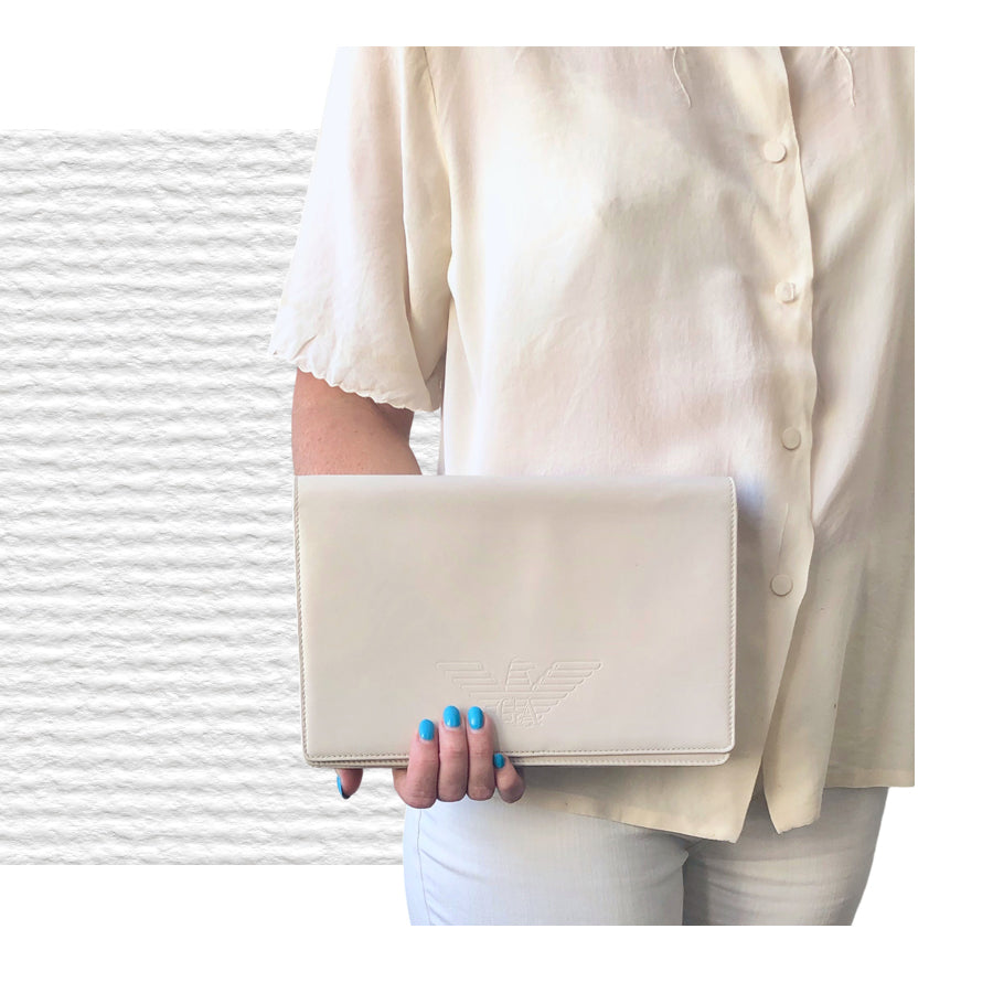 Borsa a tracolla portabile anche a mano color ghiaccio Giorgio Armani /Valextra. Buono stato. Presenta delle usure dell'uso. Fornita con scatolo originale.