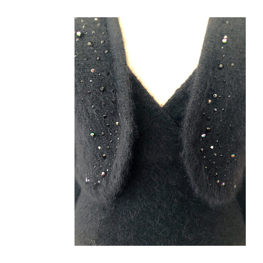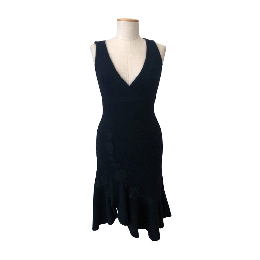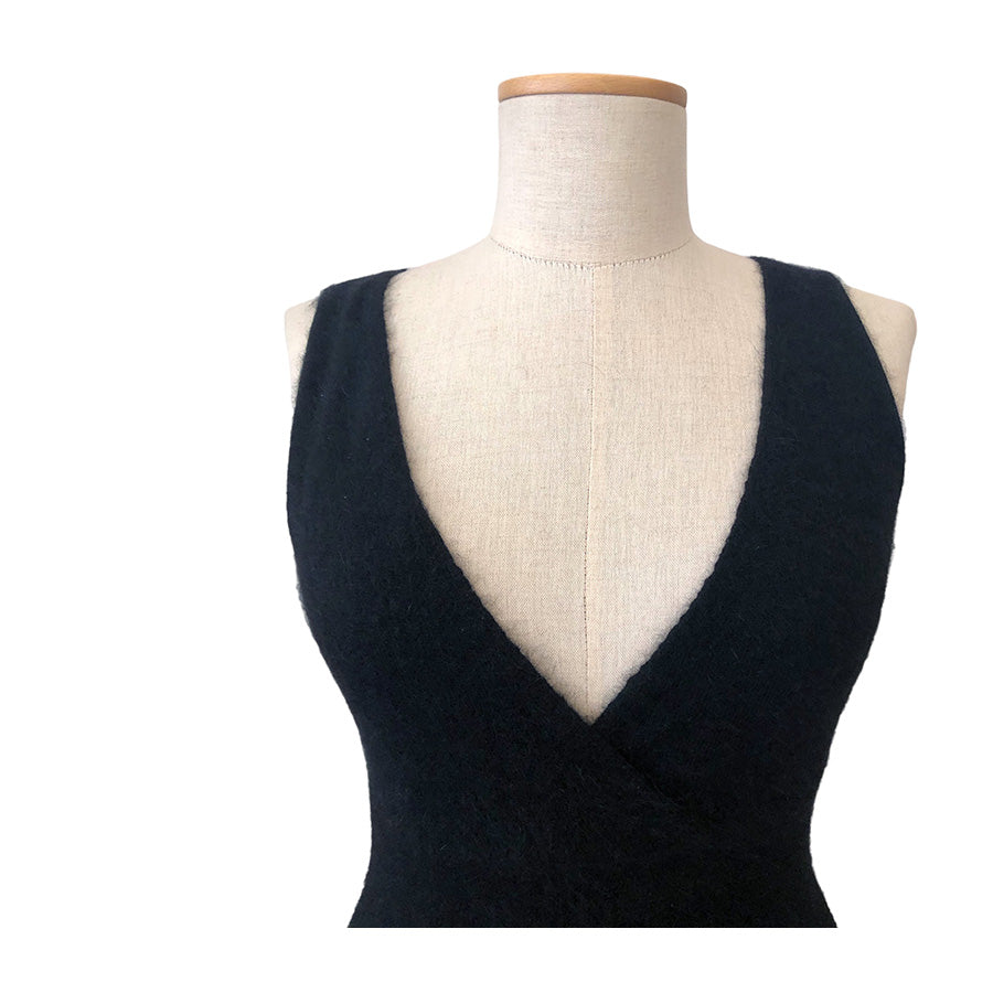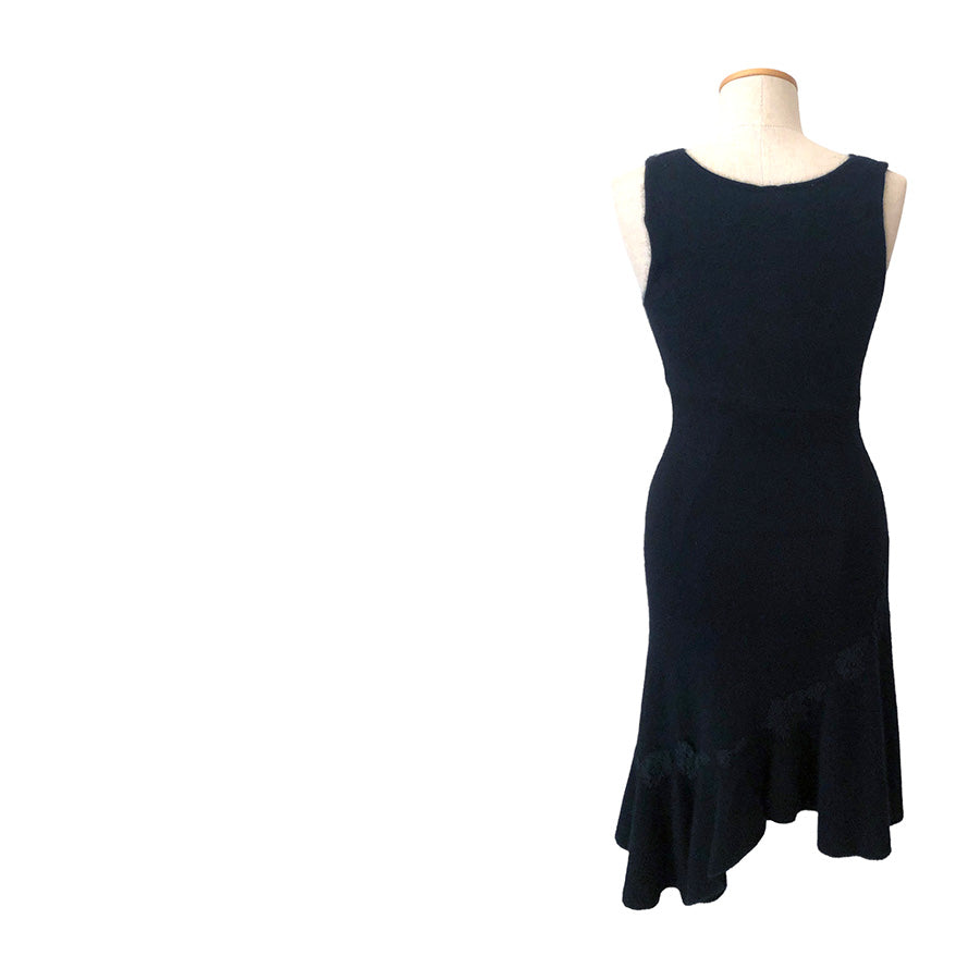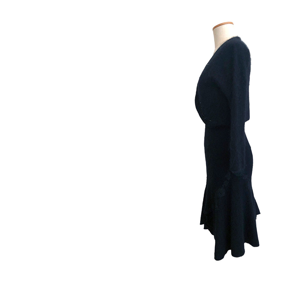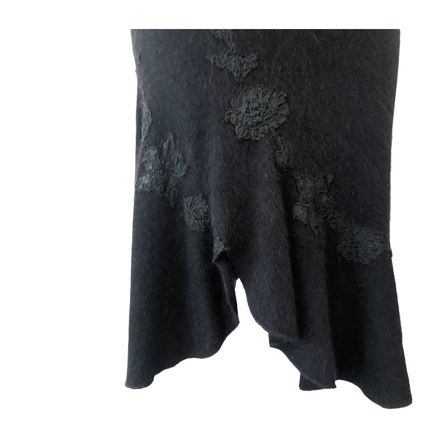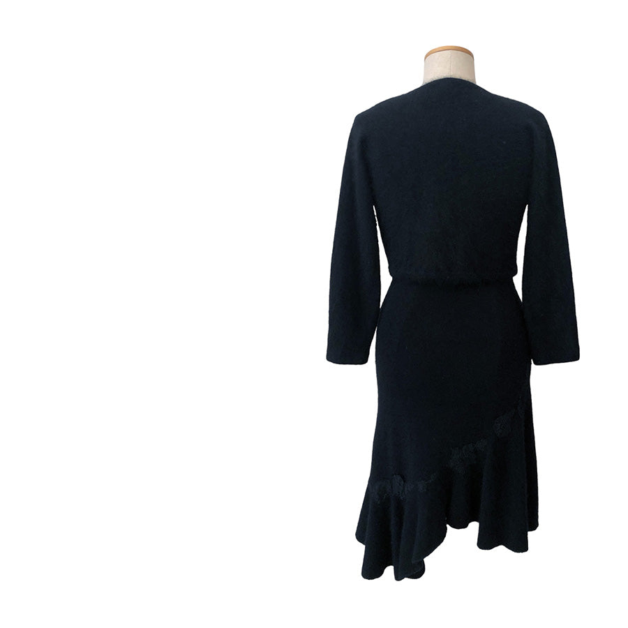 Abito asimmetrico in lana angora con applicazioni con giacchino