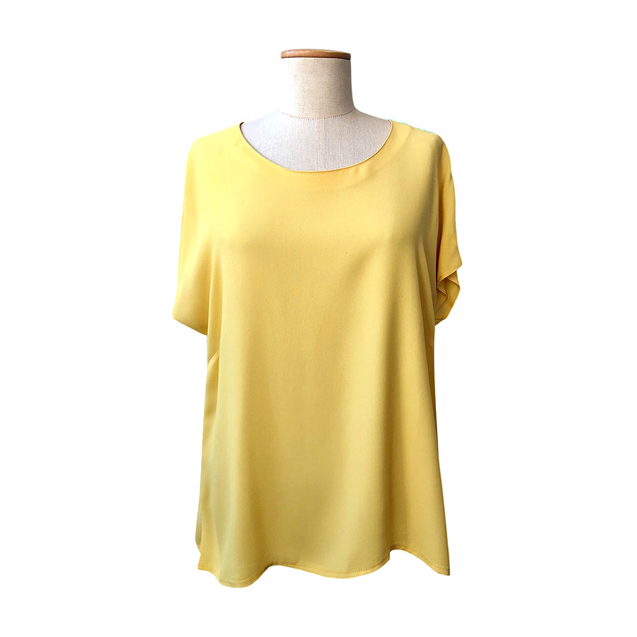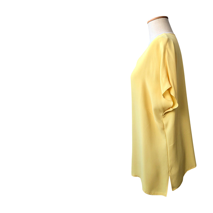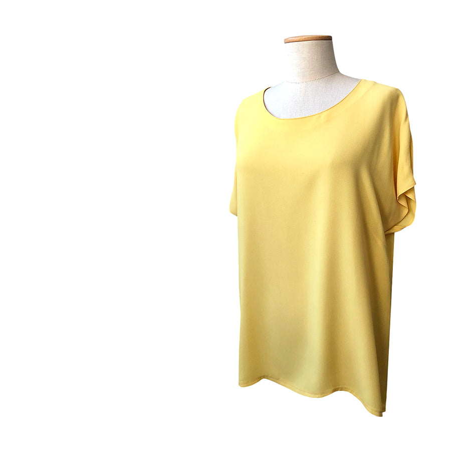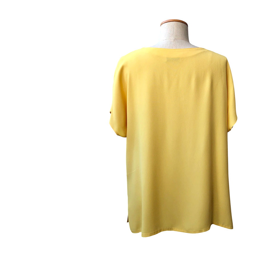 Top sottogiacca oversize Luisa Spagnoli in crêpe fluido e leggero dalla tonalità giallo pastello. Design pulito con maniche corte morbide e scollo tondo.