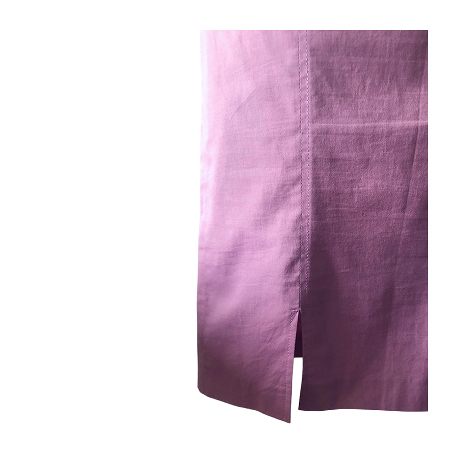 Tubino Luisa Spagnoli in cotone ed elastan rosa. Il taglio a vita alta valorizza la silhouette, mentre la linea dritta scivola lungo il corpo con semplicità e raffinatezza. Realizzato in tessuto naturale leggero ma strutturato, è ideale per la primavera e l’estate.