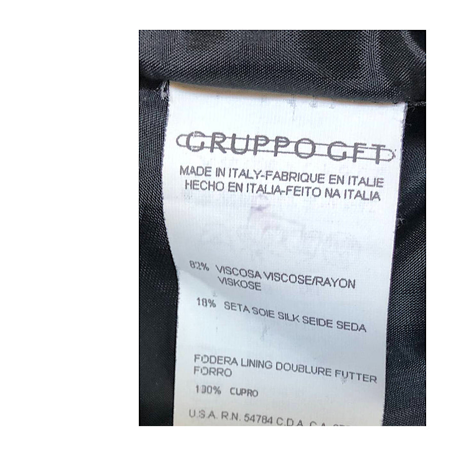 Affascinante abito vintage firmato Mani, realizzato in un morbido velluto a motivo pied-de-poule nei toni scuri. Il design presenta una scollatura ampia, un elegante drappeggio laterale che valorizza la silhouette e una linea aderente.