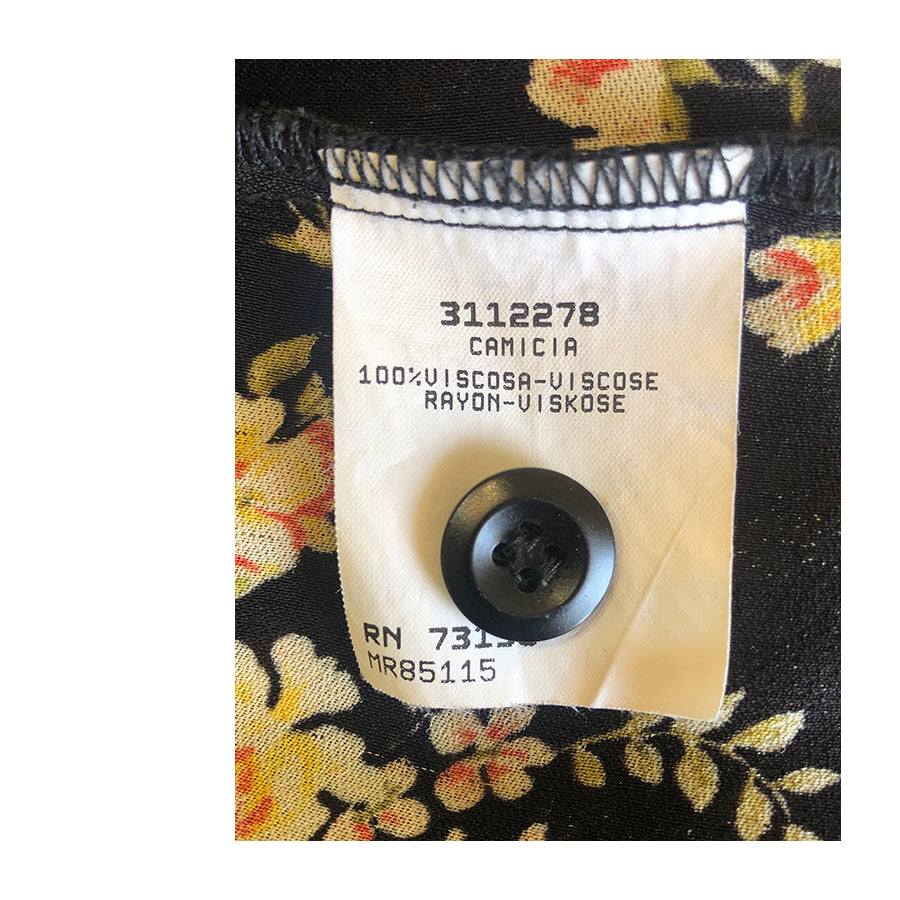 Camicione oversize vintage Marina Rinaldi in morbida viscosa a fondo nero con stampa floreale. Vestibilità comoda e fluida, maniche lunghe con risvolto, colletto classico e chiusura frontale con bottoni. La lunghezza midi con spacchi laterali lo rende versatile come abito, maxi camicia o copricostume estivo.