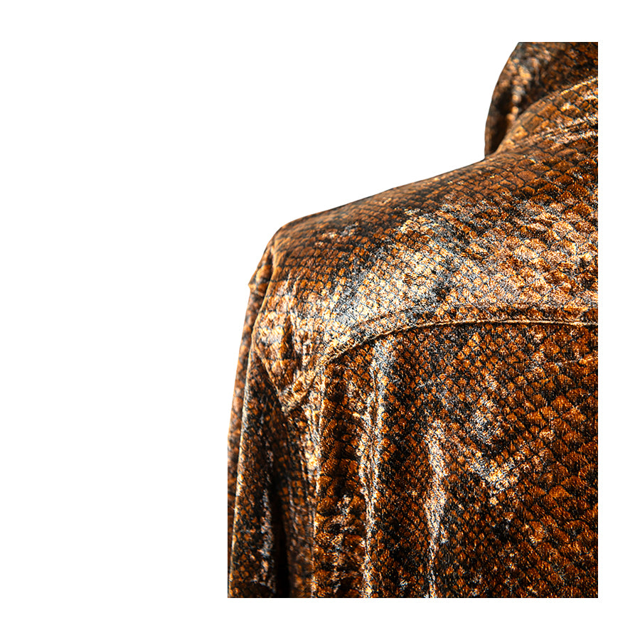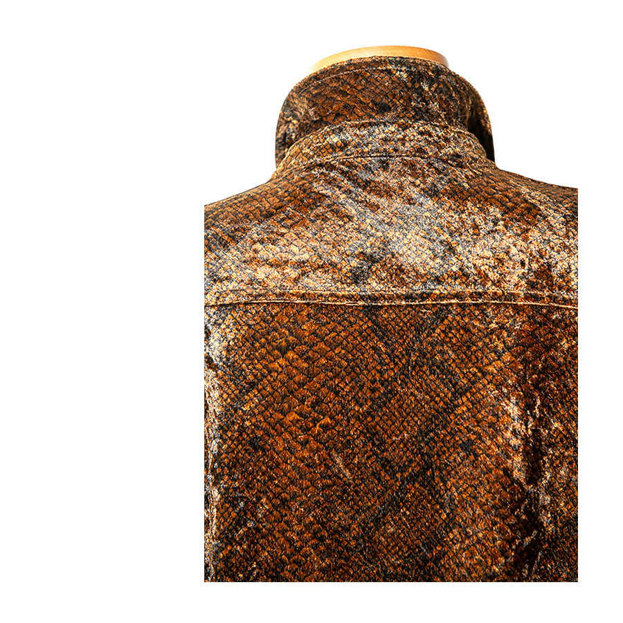 Colore: tessuto vellutato lucido stampa pitonata nei toni del marrone