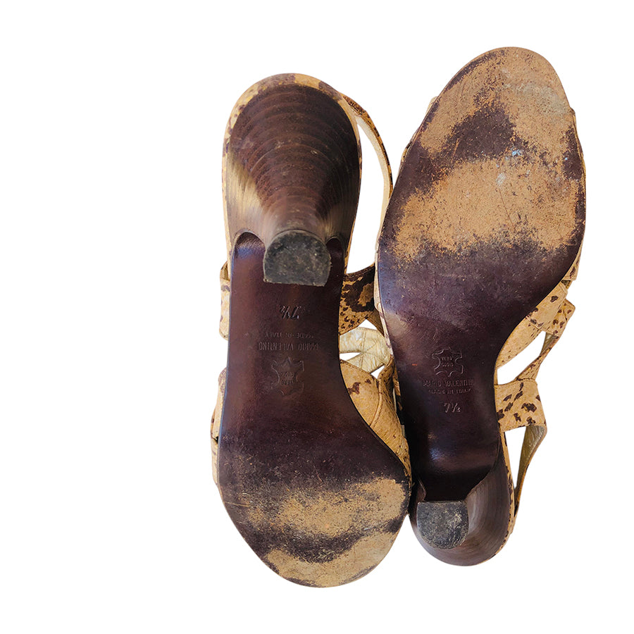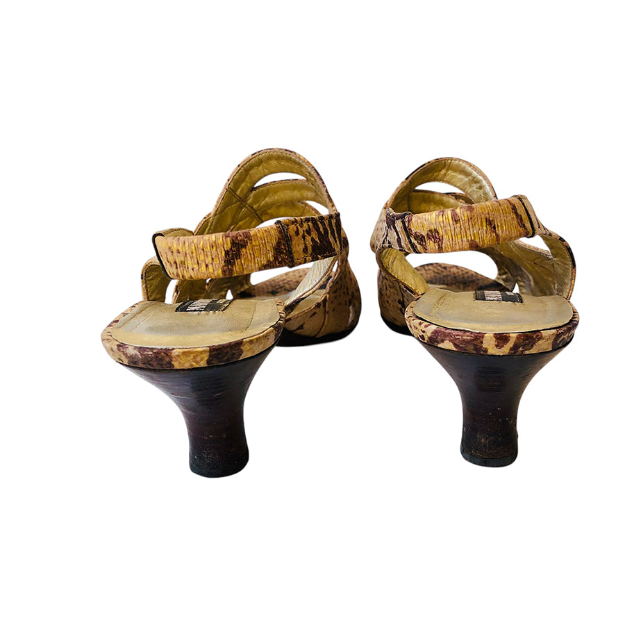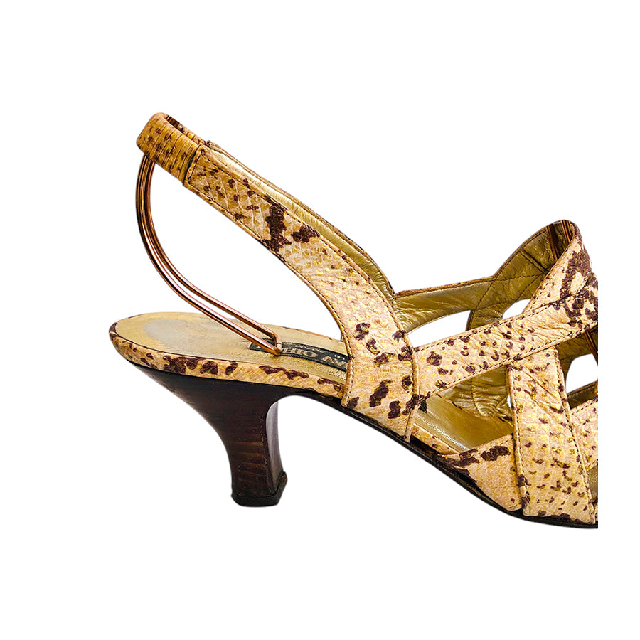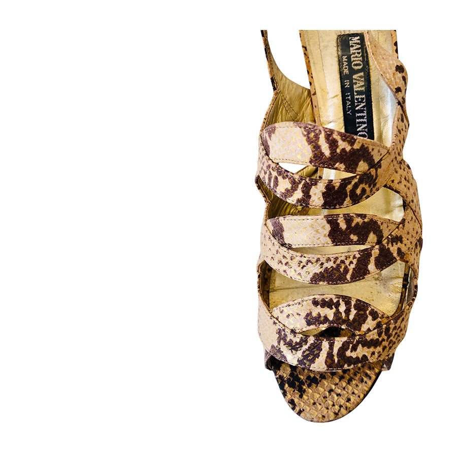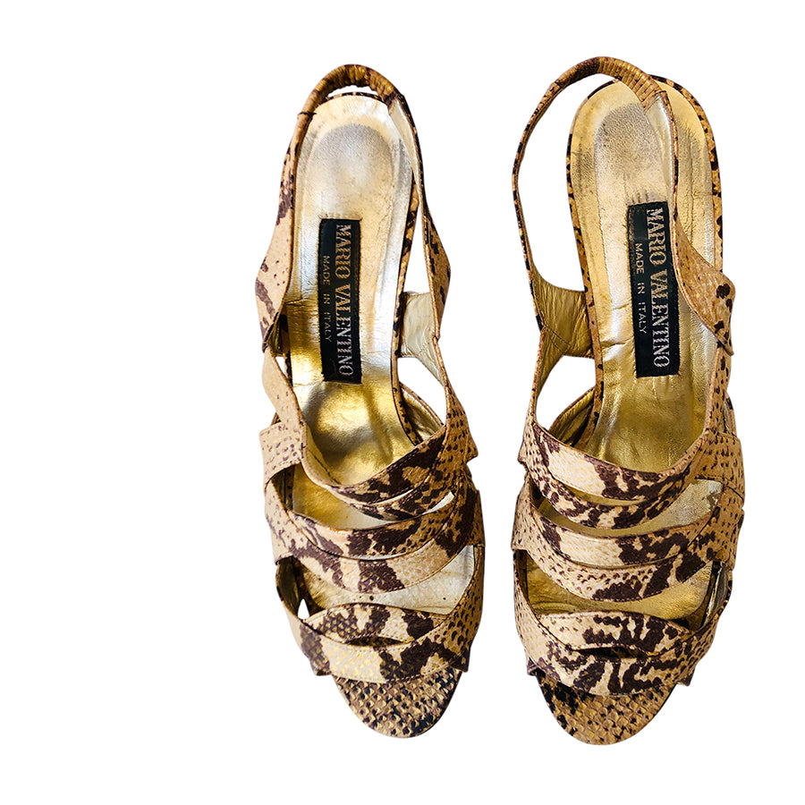 Sandali vintage Mario Valentino in pelle di pitone. Il design open toe intrecciato con cinturino slingback e tacco medio li rende comodissimi.