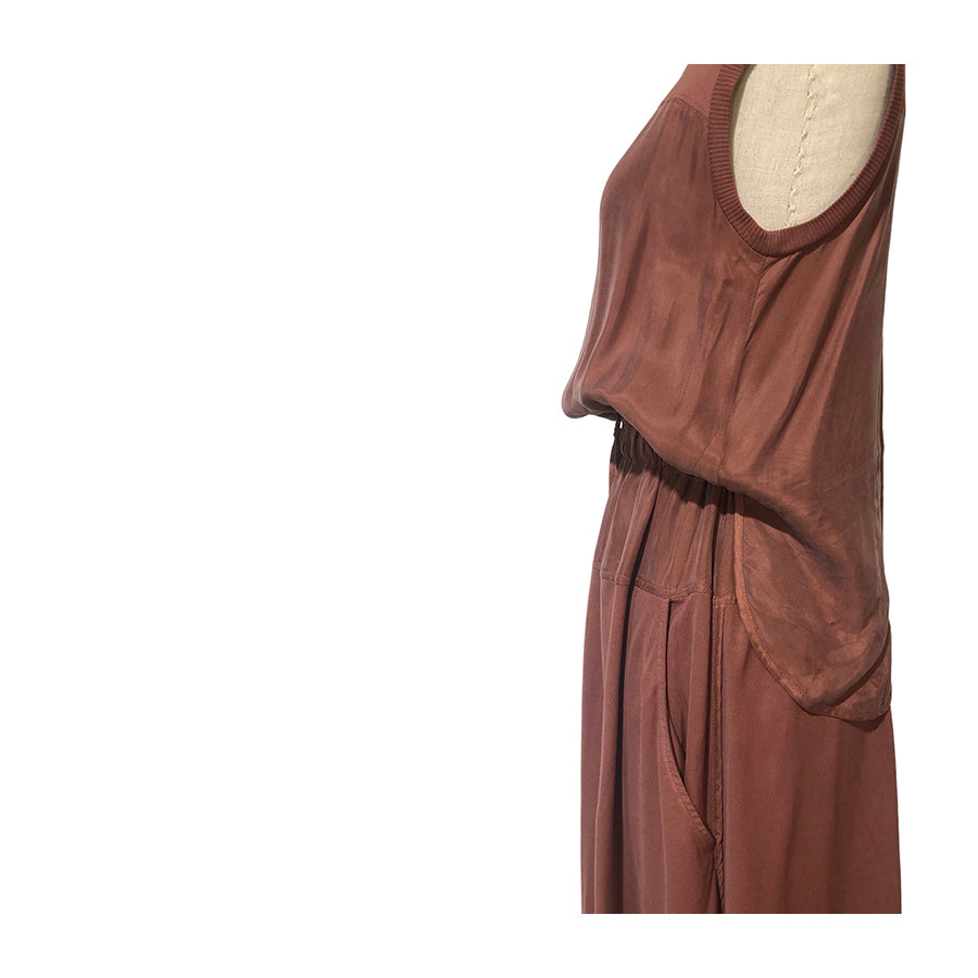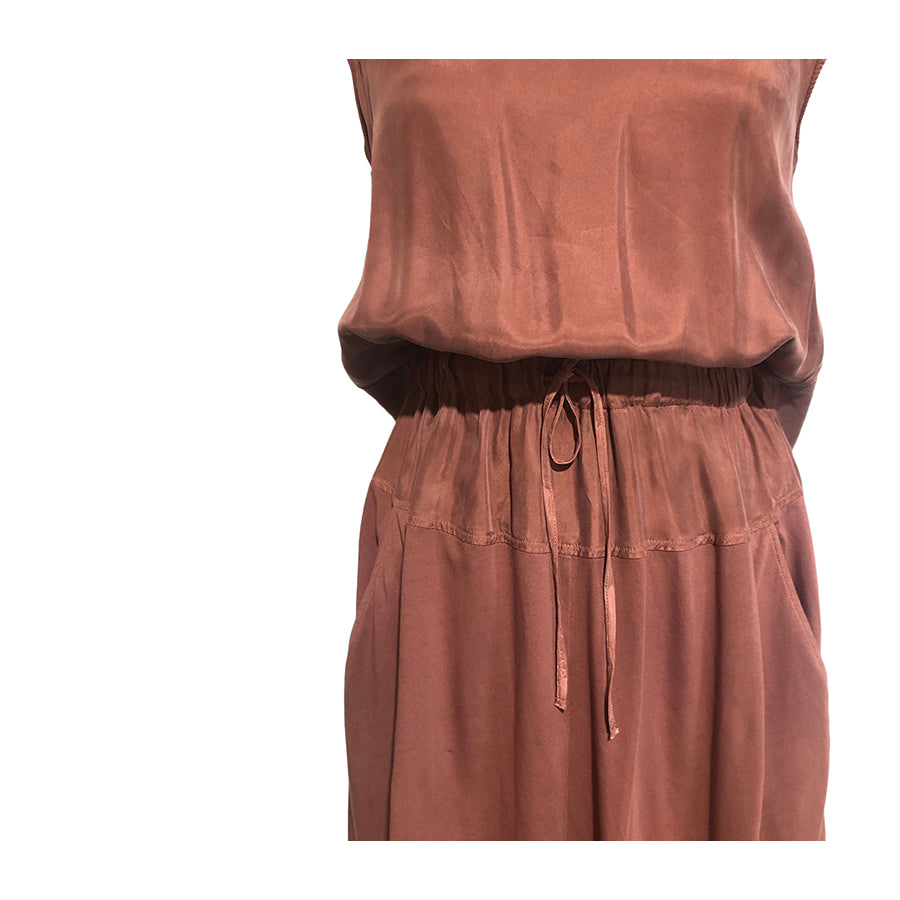Questo abito Max&Co, in delicato color terra, è l'alleato perfetto per un look semplice e raffinato. Con il suo taglio morbido e la coulisse in vita, offre comfort e stile per ogni occasione casual chic.