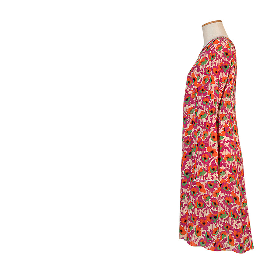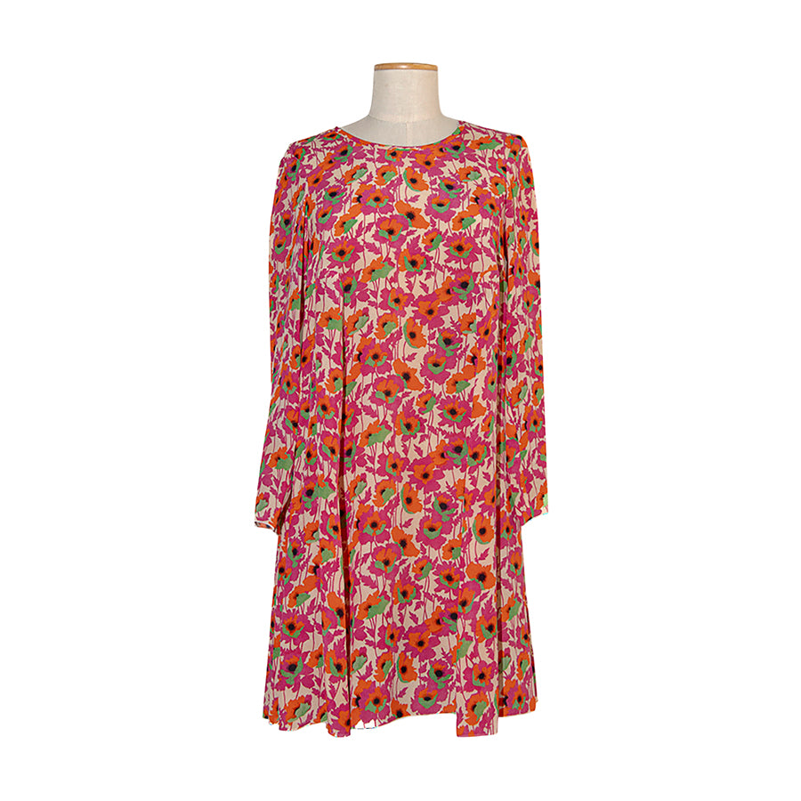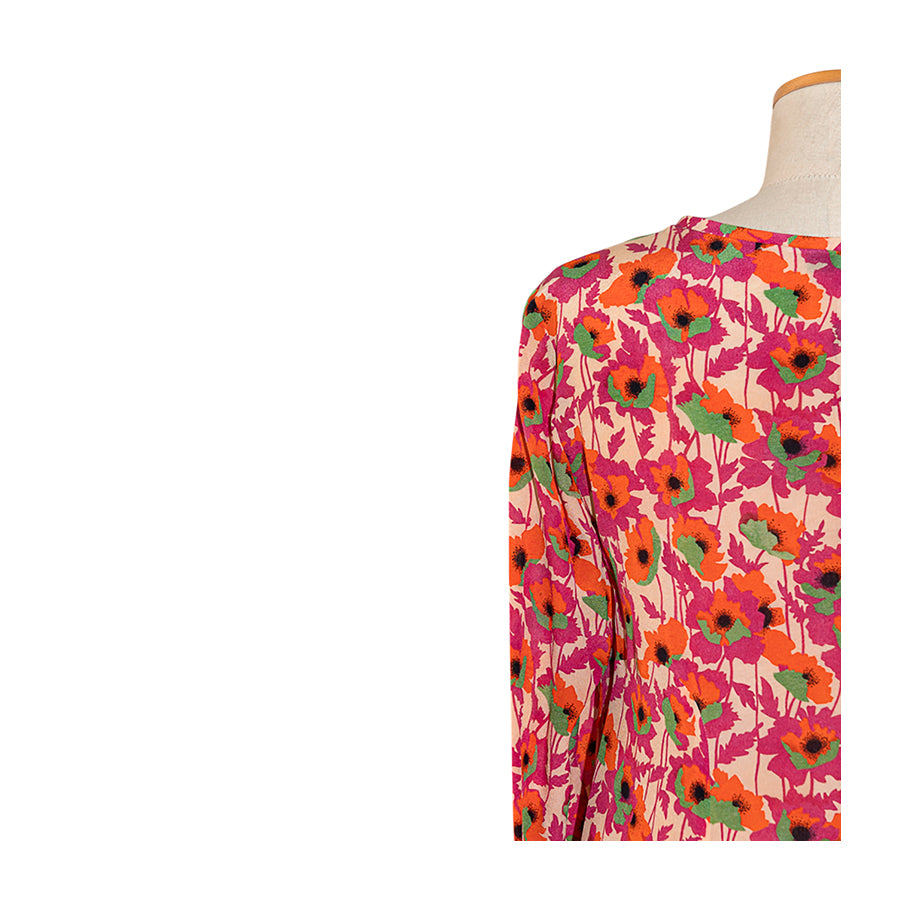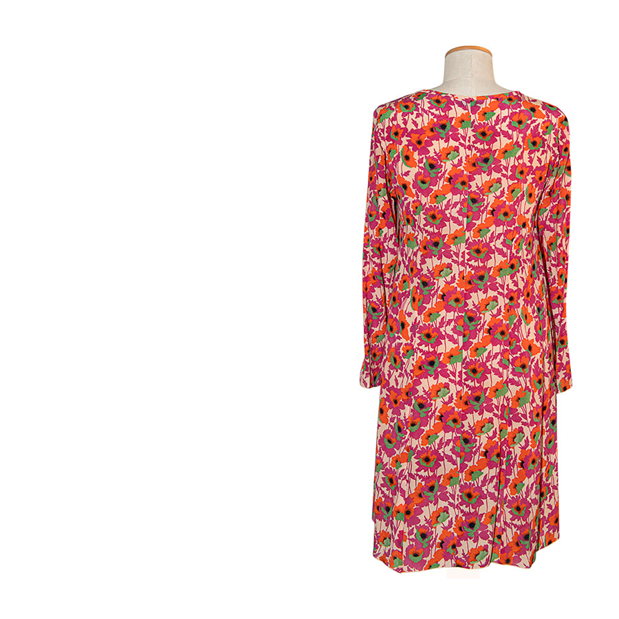 Abito in seta Max&Co con una stampa floreale su fondo rosa cipria. Il taglio morbido e svasato unito alla leggerezza della seta crea un fit fluido e arioso.