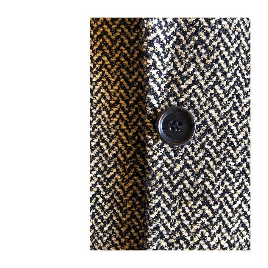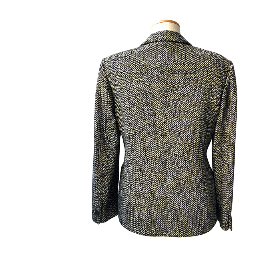 Blazer vintage ’90 Max Mara in morbida lana melange nei toni del beige e nero. Trama spigata (herringbone), chiusura monopetto con bottone singolo e tasche a filetto. Intramontabile.