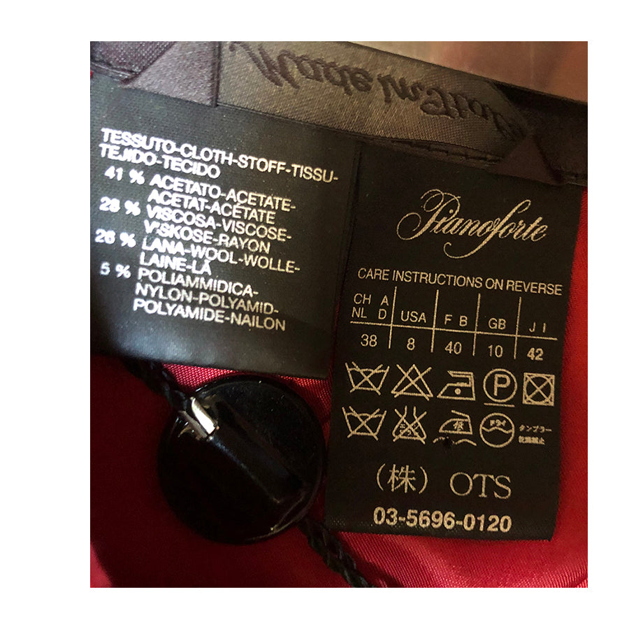 Abito vintage MaxMara realizzato in un tessuto lucido color rosso rubino dalla linea svasata e fluida, con corpino smanicato a girocollo e cintura tono su tono in vita che valorizza la silhouette. La finitura satinata cattura la luce e la sartorialità MaxMara si riflette nei dettagli: taglio pulito, costruzione impeccabile e tessuto di alta qualità.