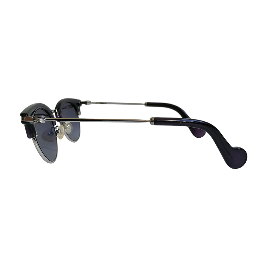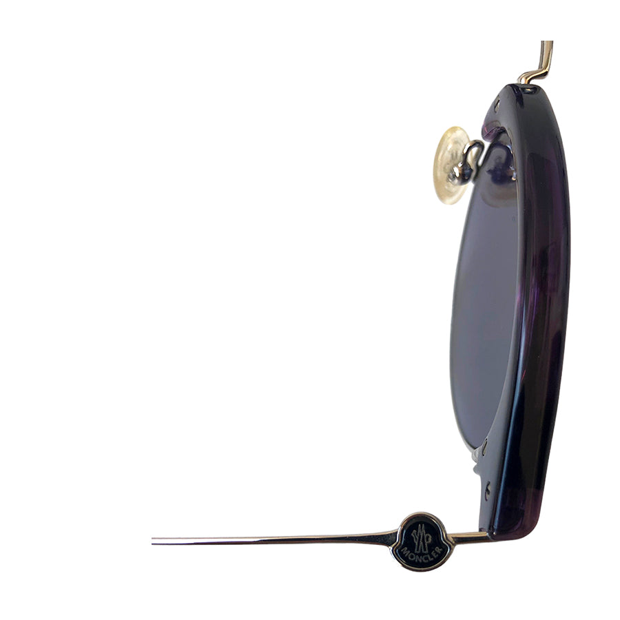 Occhiali da sole vintage Moncler in acetato viola con aste in metallo. La montatura dal design tondo con ispirazione clubmaster li rende un accessorio iconico, perfetto per chi ama l’eleganza retrò con un tocco moderno. Le lenti sfumate garantiscono protezione UV e aggiungono carattere a qualsiasi outfit, mentre la struttura leggera in metallo assicura comfort anche per un uso prolungato. Unisex e senza tempo.