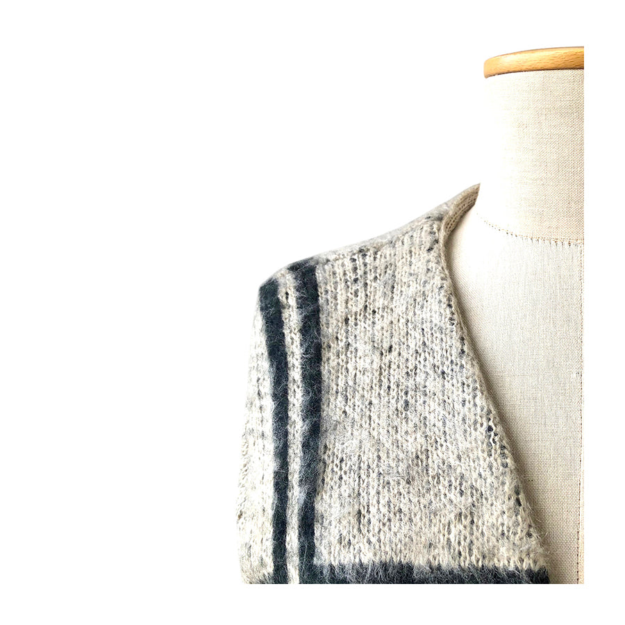 Cardigan lungo in maglia Only in una morbida miscela di filati effetto lana con motivo a quadri oversize nei toni del panna e del nero. Il design aperto sul davanti senza bottoni lo rende ideale come capospalla leggero. Dettaglio interno: micro-trama in contrasto.