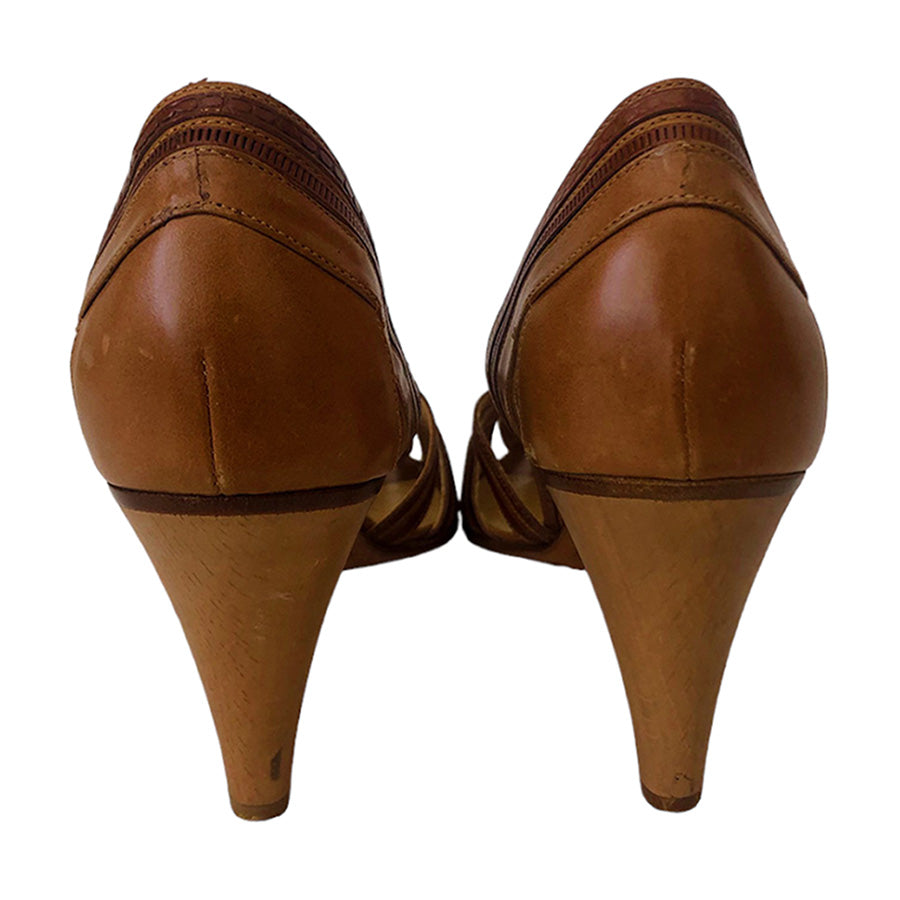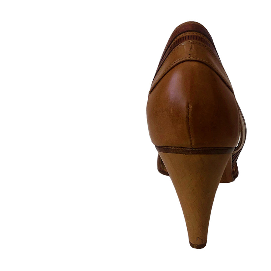Decolleté in pelle e cuoio con tacco in legno