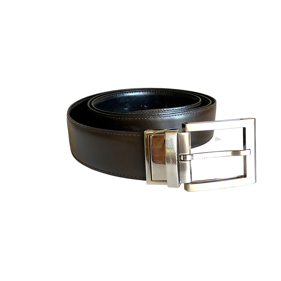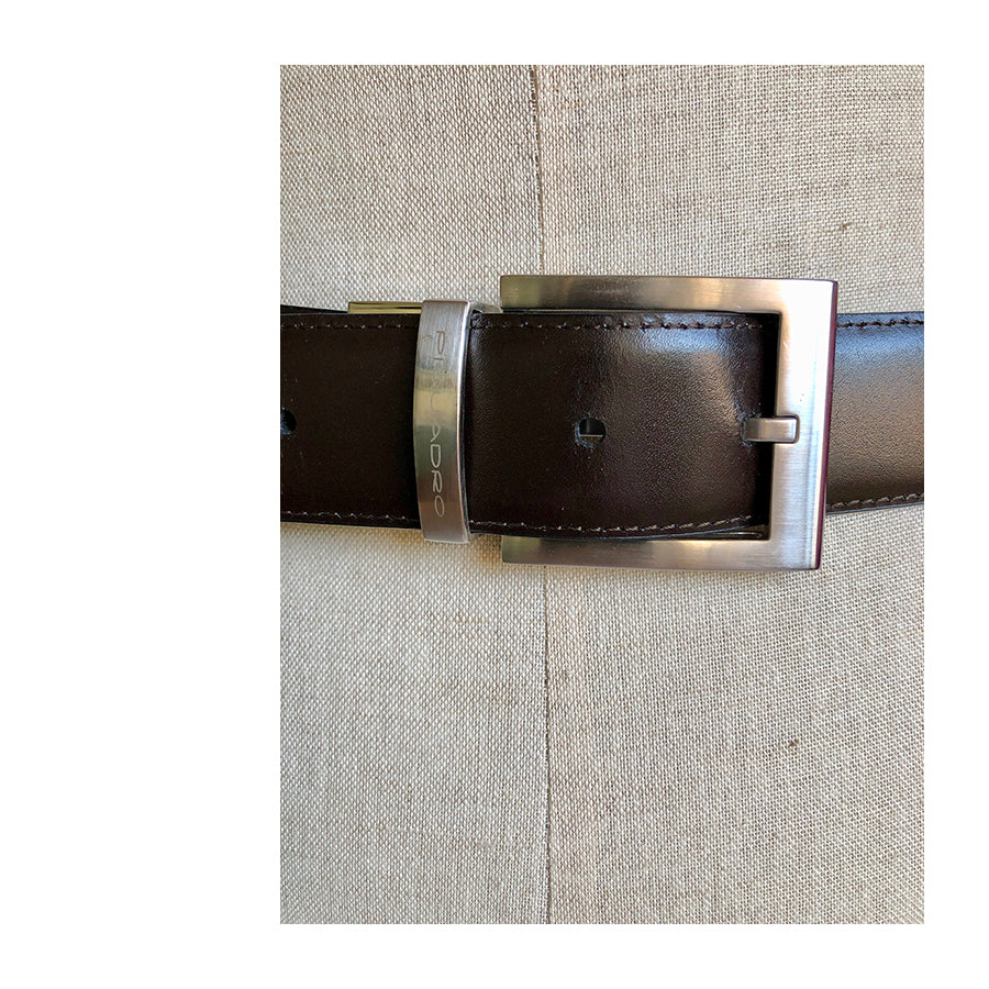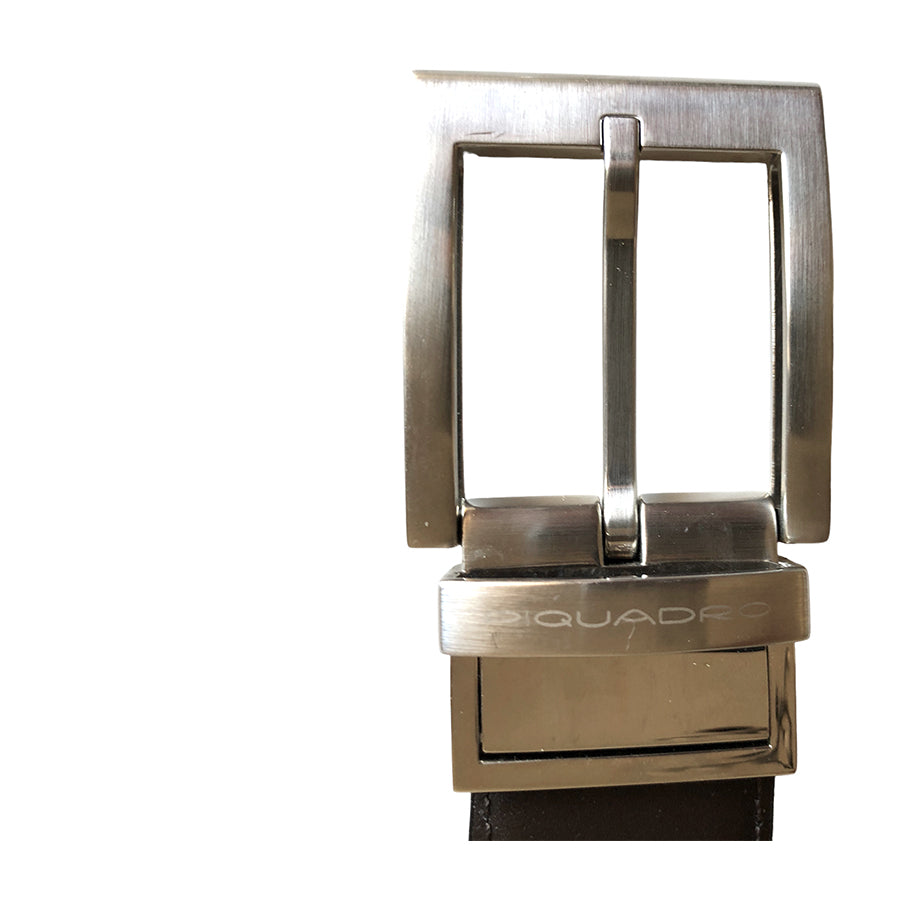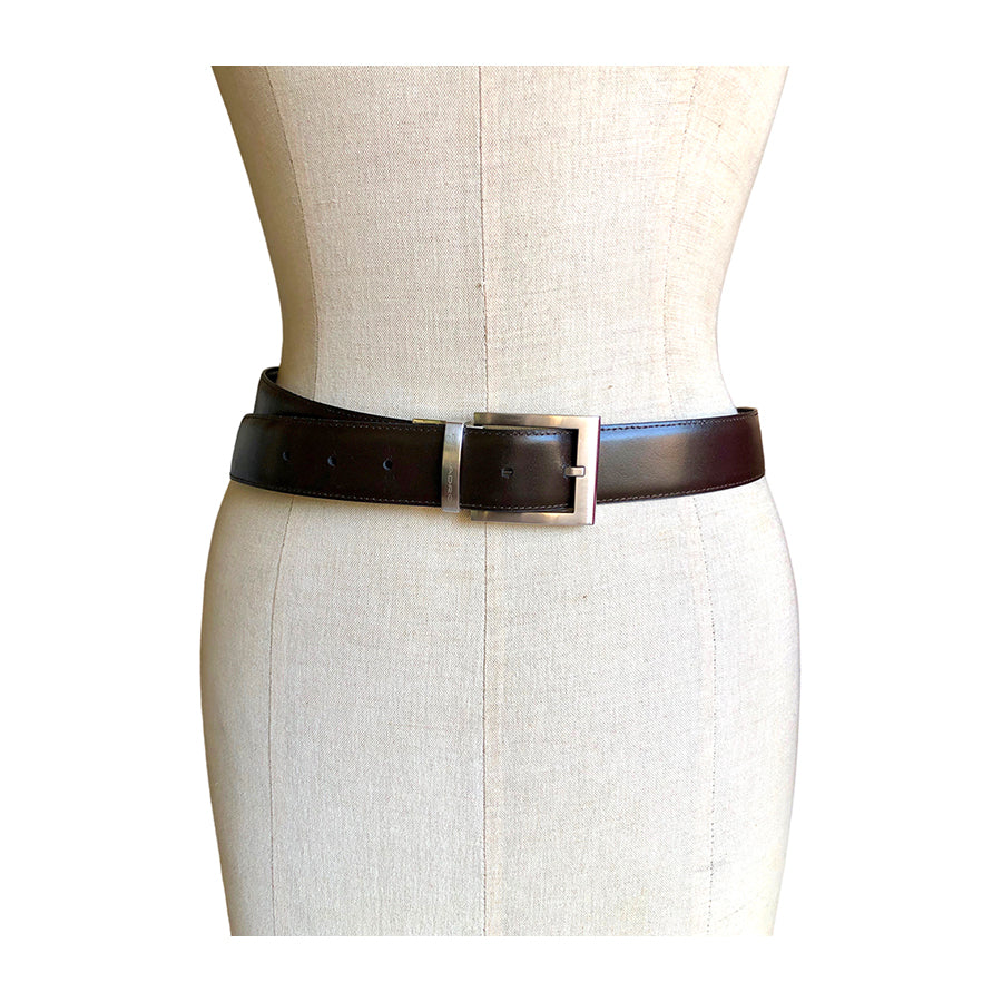 Cintura in pelle con una fibbia quadrata in metallo satinato