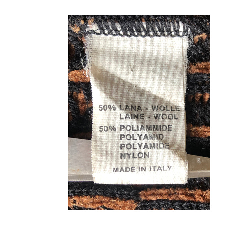 Cardigan vintage Renato Balestra in tessuto jacquard dalle tonalità calde del marrone con motivo geometrico all-over. Chiusura frontale con bottoni personalizzati logati RB in smalto bordeaux e oro e tasche applicate con profili a contrasto.