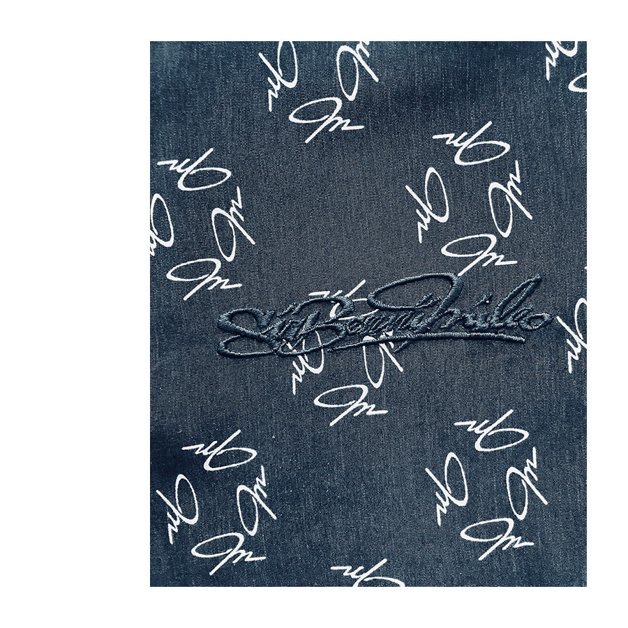 Camicia Sir Benni Miles, iconico brand streetwear, in puro stile vintage anni 2000. Taglio dritto e confortevole, stampa geometrica tono su tono su base blu navy, colletto classico e chiusura con bottoni.