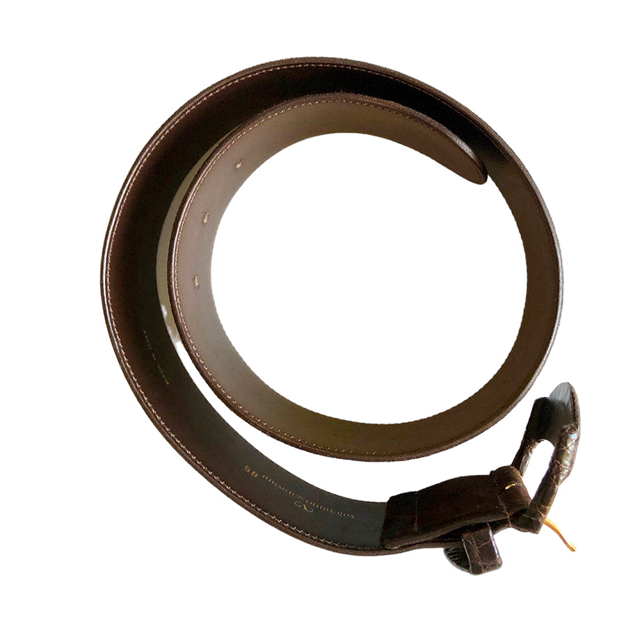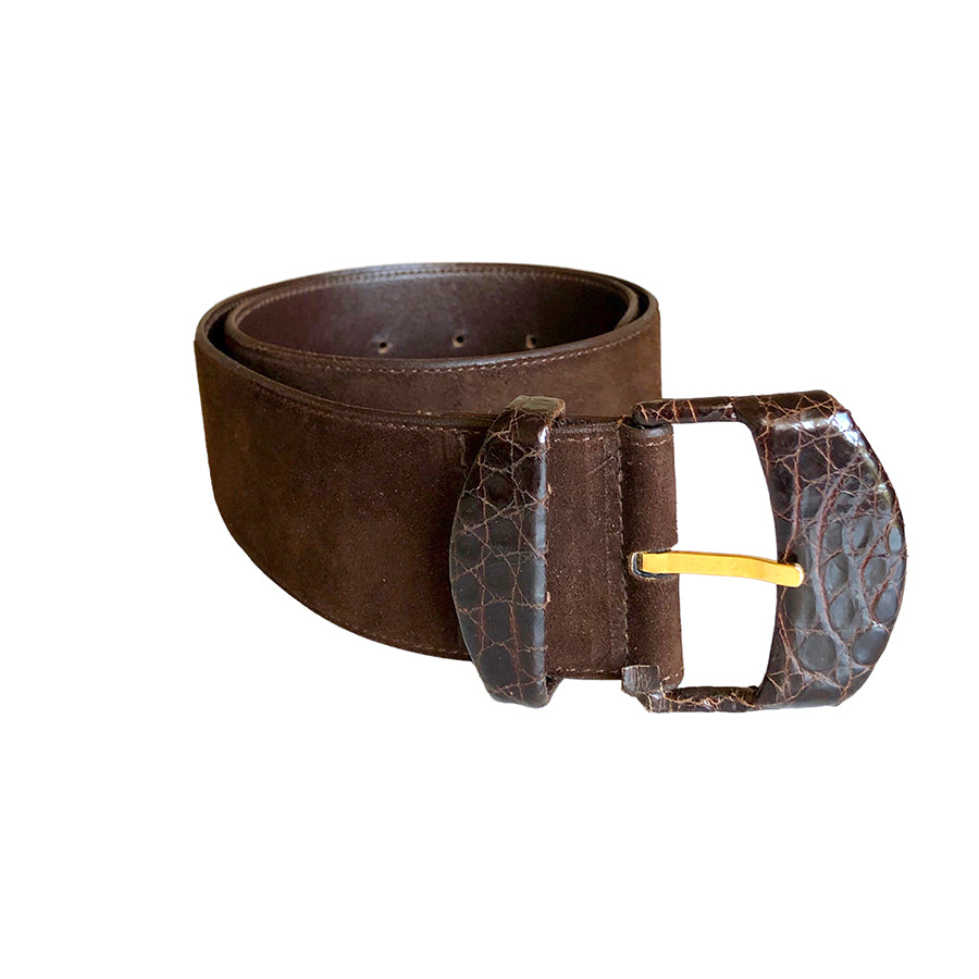 Cintura in pelle scamosciata con fibbia e inserti in rettile