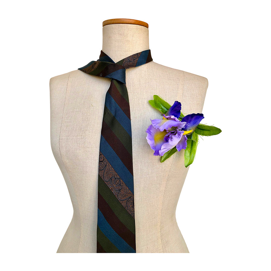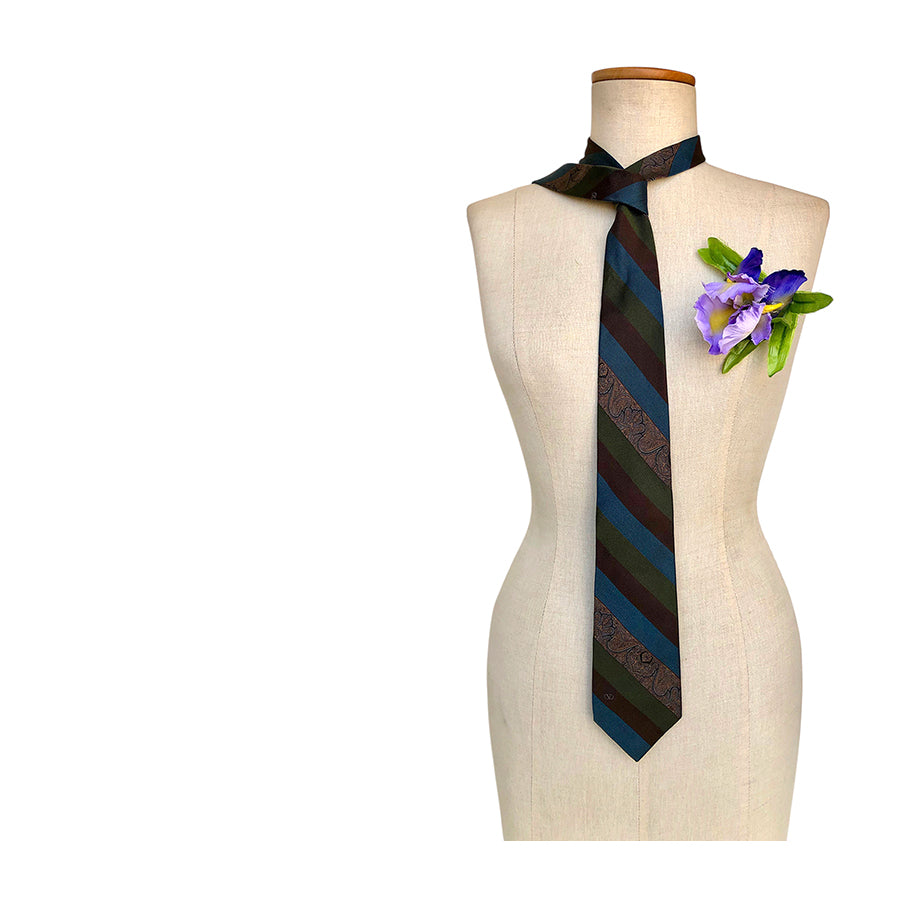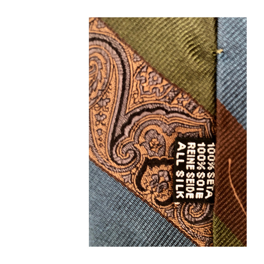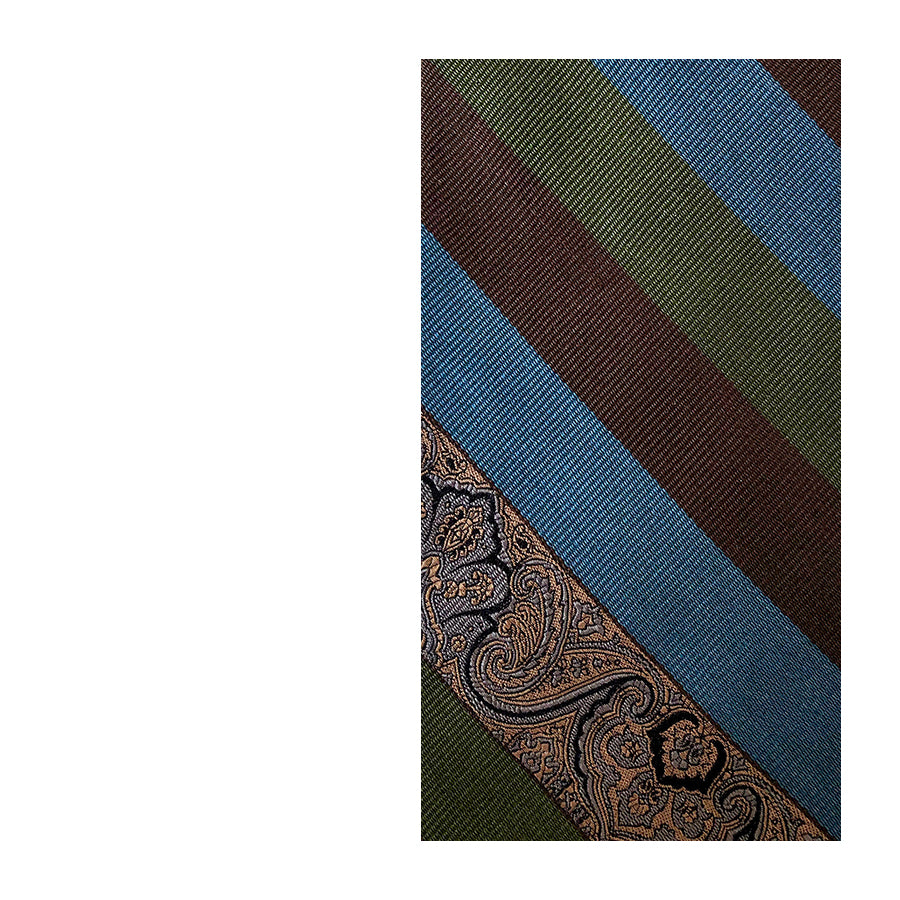 Colore: righe diagonali nei toni del blu, verde e marrone, con dettagli decorativi