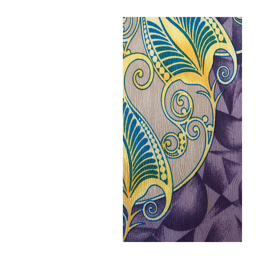 Colore: motivo barocco floreale nei toni del giallo, verde, blu e viola