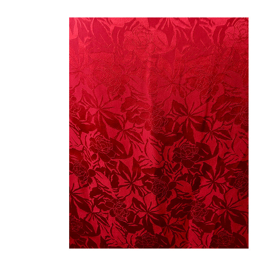Camicia vintage sartoriale in seta rossa. Il tessuto ha un raffinato motivo jacquard floreale tono su tono. Il taglio dritto e senza colletto rende la blusa estremamente versatile e i dettagli di pregio come i bottoni rivestiti in seta sul davanti e ai polsini doppi con chiusura a due bottoni esaltano lo stile sartoriale.
