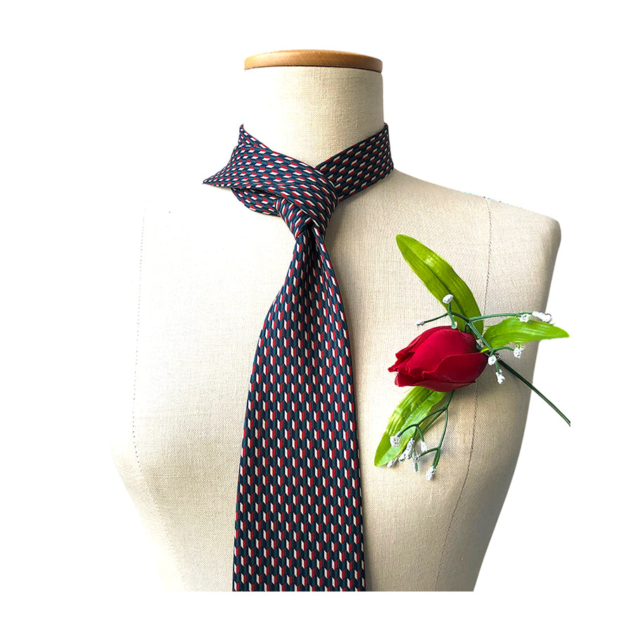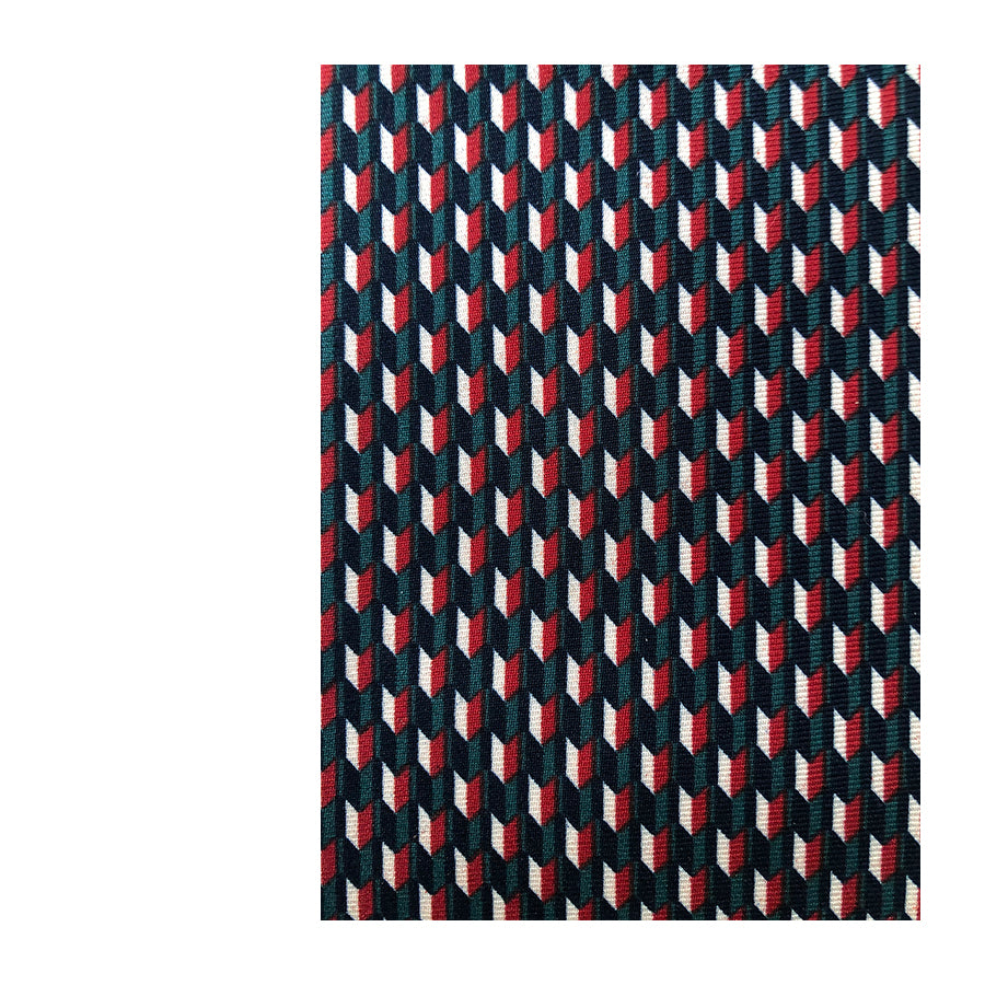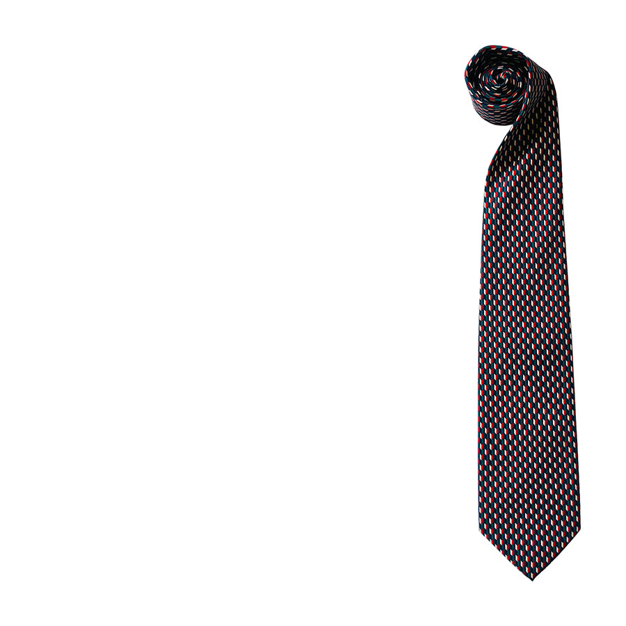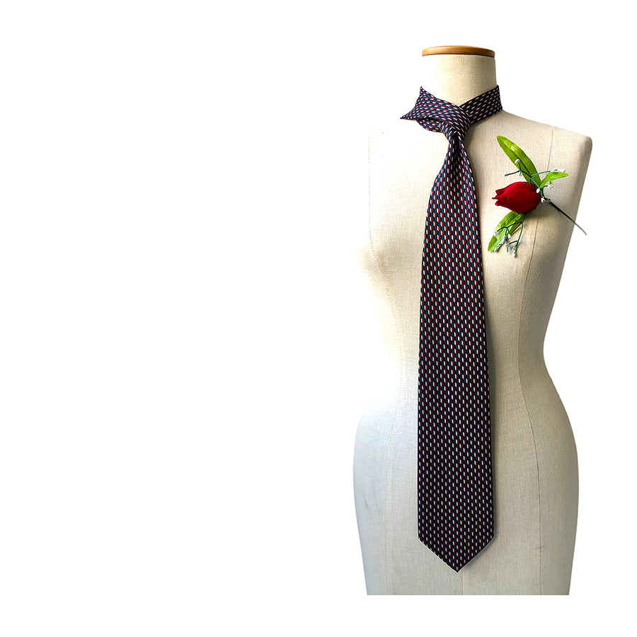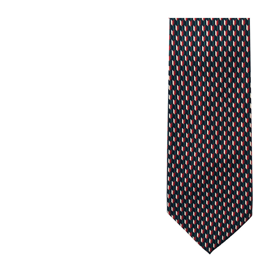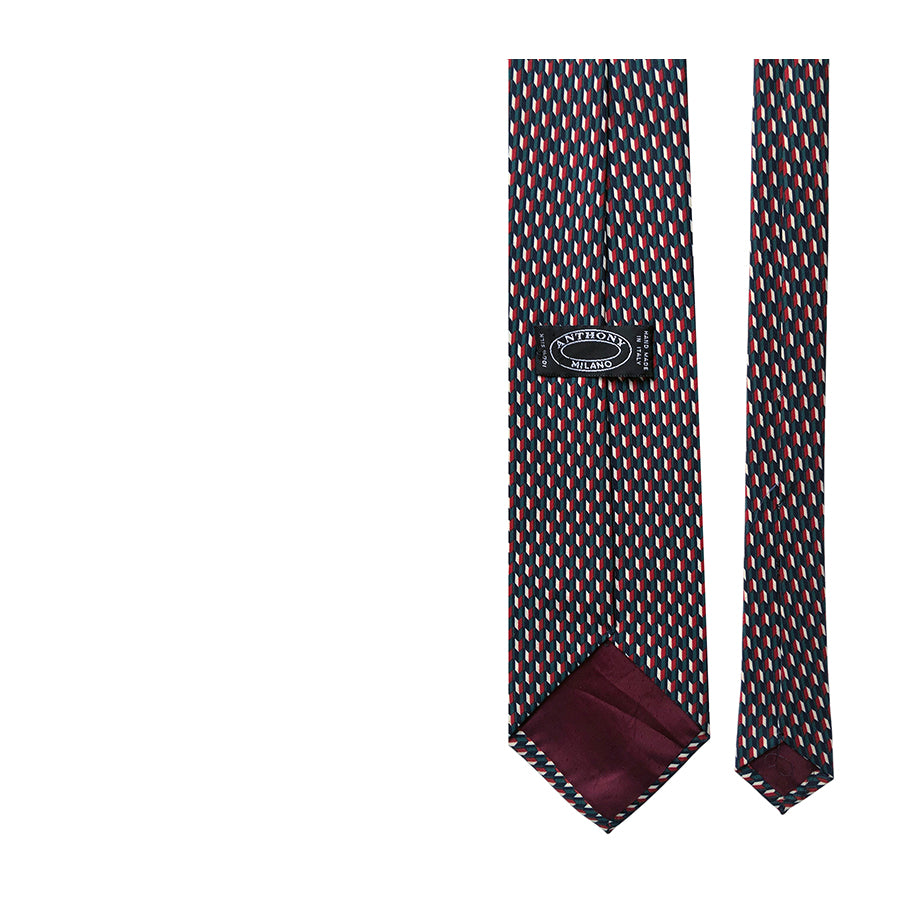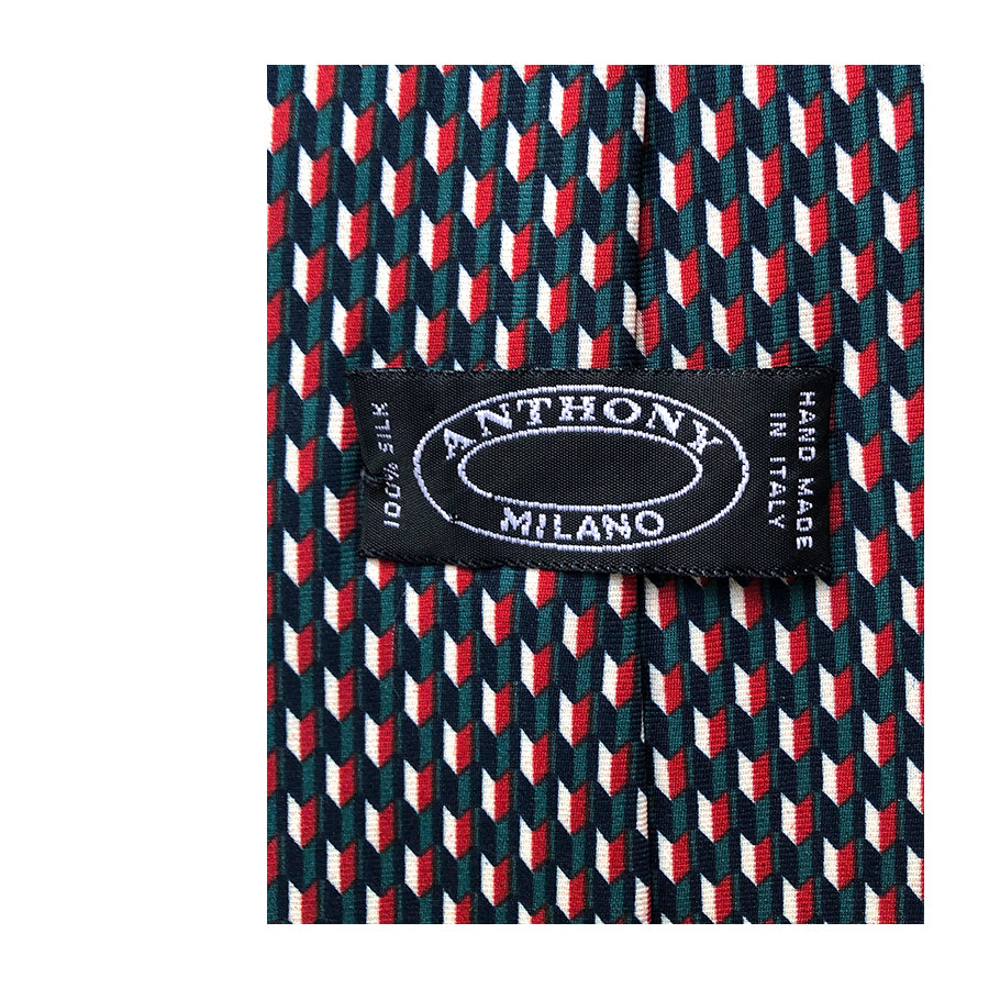 Cravatta vintage Antony Milano in seta con motivo geometrico multicolor nei toni del blu navy, rosso e avorio.